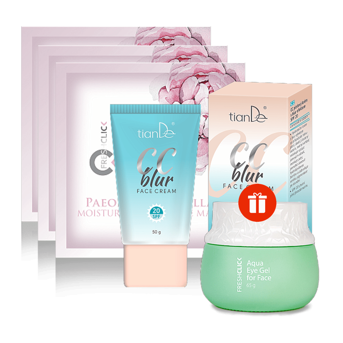 Правила и условия: Купете CC крема с матиращ ефект и SPF 20 + три хидратиращи PGA маски с божур и центела – и вземете БЕЗПЛАТЕН аква гел за очи и лице!