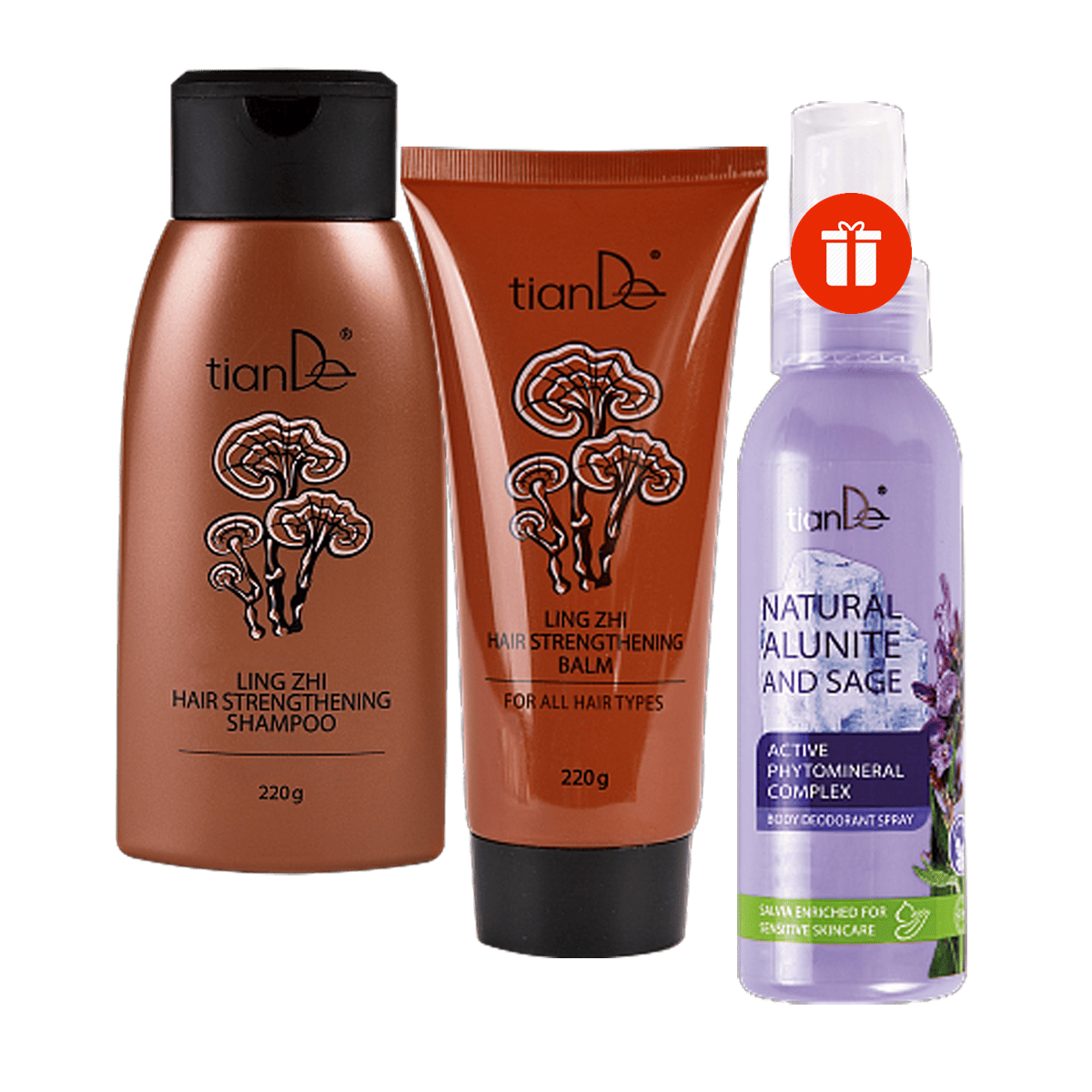 Шампоан и балсам с гъба линджи – подарък спрей – дезодорант с алунит и салвия! За силна коса и свежо тяло!