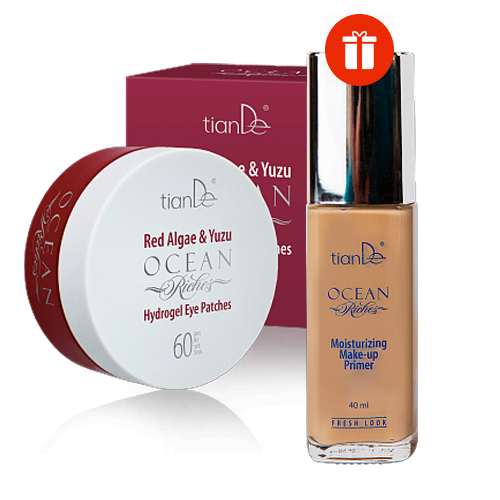 Купете хидрогелни лепенки за очи с червени водорасли и юзу и получете ПОДАРЪК хидратираща основа за грим.