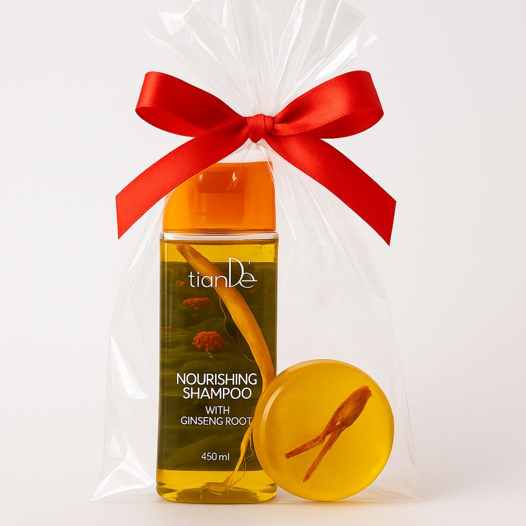 Коледен пакет за коса и тяло с женшен е естествена комбинация за подхранване, укрепване и регенерация, подходяща за ежедневна грижа у дома и за подарък през празничния сезон. Женшенът е известен със своите тонизиращи, възстановяващи и антиоксидантни свойства. Той стимулира клетъчната регенерация, подобрява жизнеността на кожата и косата и възвръща естествената им сила и свеж вид.