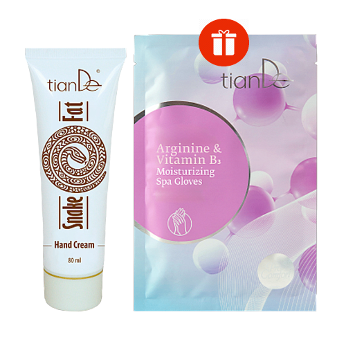 Купете крем за ръце със змийско масло и получете ПОДАРЪК хидратиращи спа ръкавици с аргинин и витамин B3!