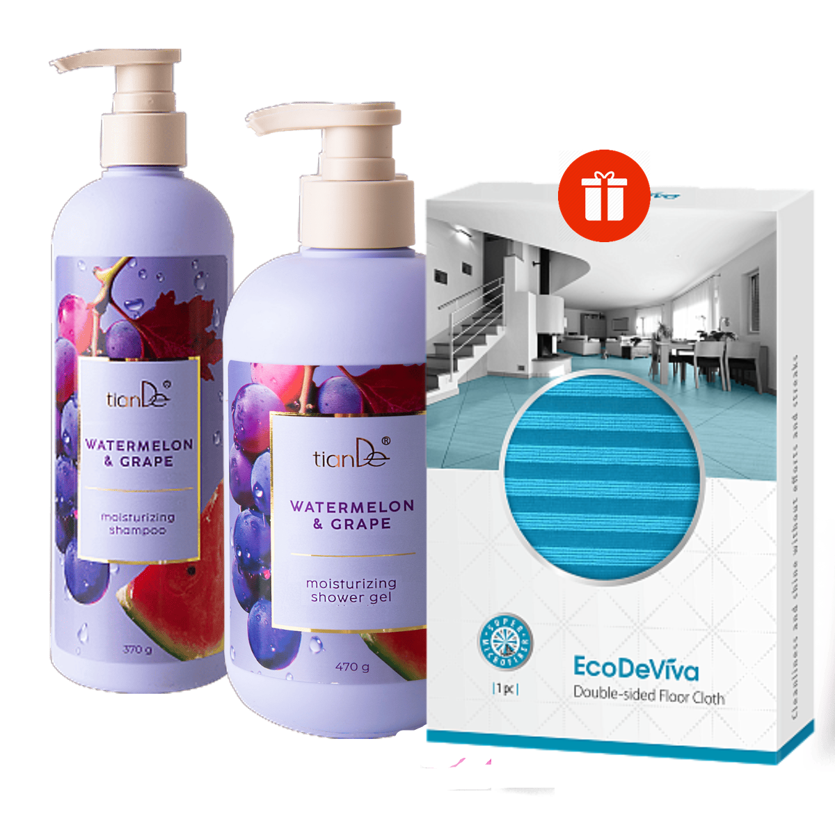 Хидратираща грижа с диня и грозде с подарък! Шампоан+душ гел „Диня и грозде“- ПОДАРЪК Двустранна кърпа за под !